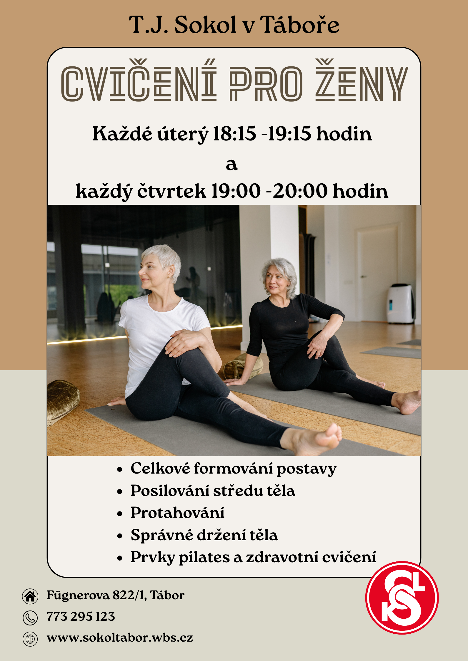 1) Úterý od 18:15 + čtvrtek od 19:00 - pozvolný začátek, mírnější tempo, prvky pilates a zdravotního cvičení